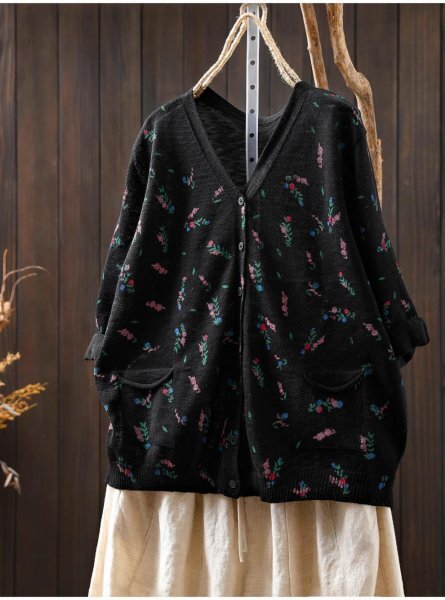 - 25zy サマーニット レディース トップス カーディガン ラフ タッチニット チュニック トップス ナチュラル 冷房紫外線対策 花柄 サラサラ5