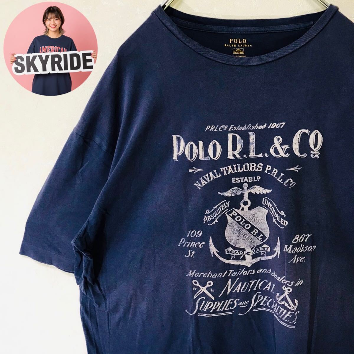 - 【ビッグシルエット】POLO RALPH LAUREN ヴィンテージマリン風 ビッグプリント Tシャツ ネイビー LT ゆるだぼ メンズ 古着 #TT0237