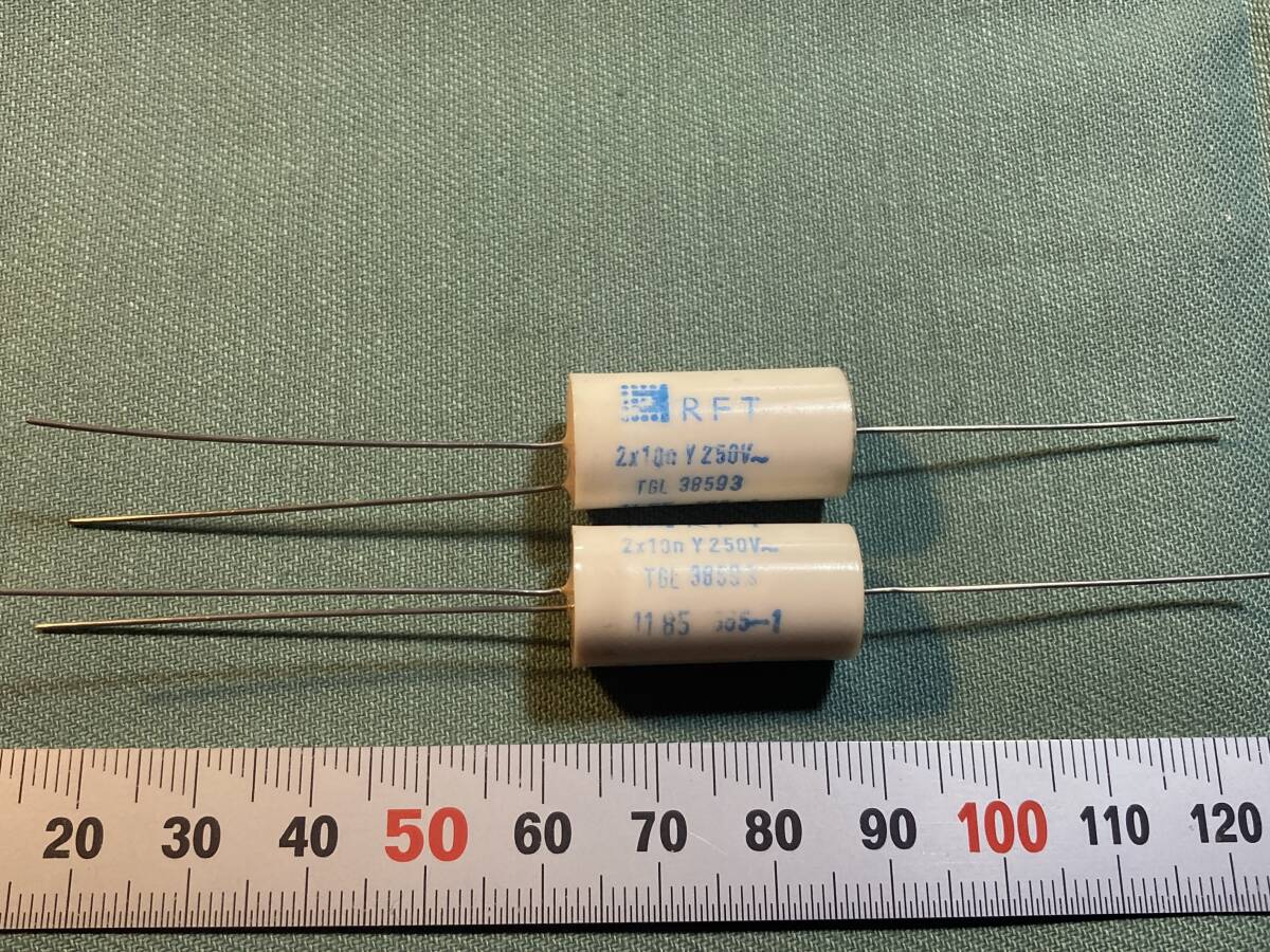 - [送料込] RFT 0.01μF x 2極 250V 三端子フィルムコンデンサ 9個組