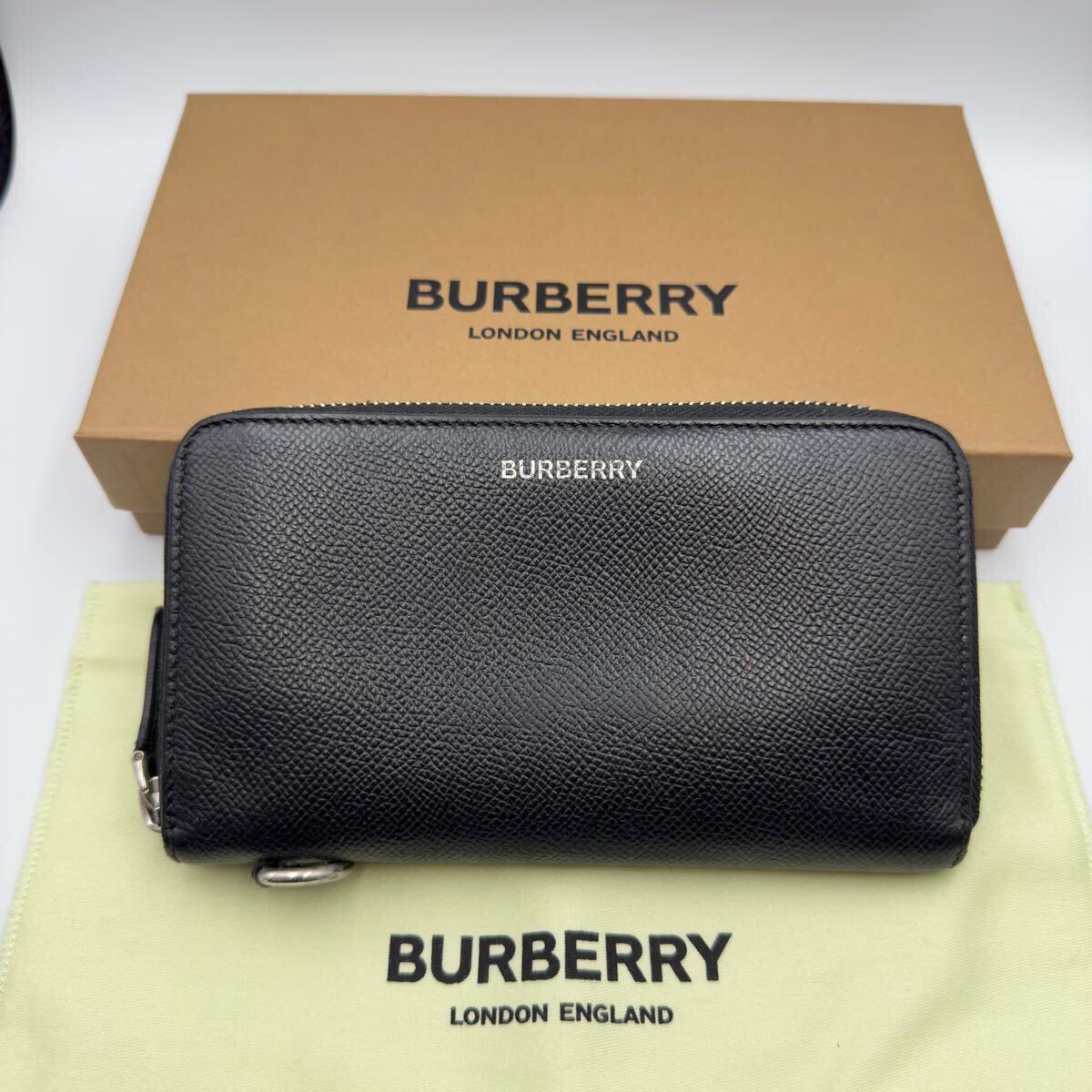 > 美品 バーバリー ラウンドファスナー 長財布 小銭入れ付き ブラック レザー メンズ レディース 二つ折り財布 カードケース コインケース