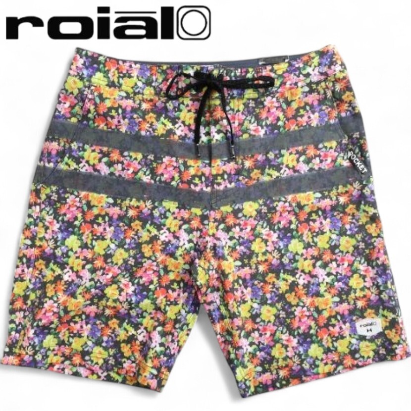 - roial ロイアル ボーダー フラワー 花 総柄 ストレッチ ボードショーツ サーフパンツ 水着 BS112 ブラック 30▲007▼20525k03