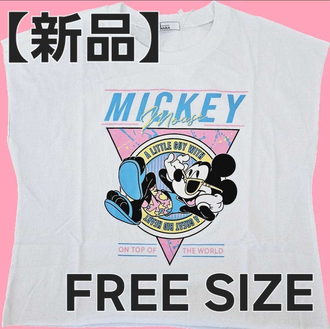 - 【新品】Tシャツ 白ホワイト フリーサイズFREE SIZE ディズニーDisney かわいいビックプリント ミッキーミニードナルドグーフィープルート