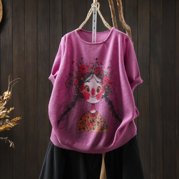 > 25zy サマーニット レディース トップス プリント柄 ラフ 麻タッチニット チュニック ナチュラル 麻混 サラサラ 涼感8