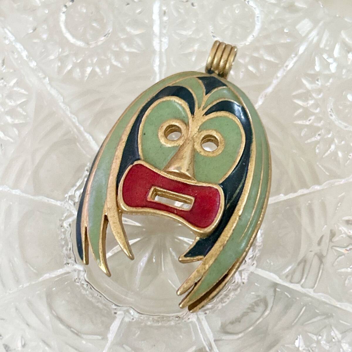 - 希少 ドーラン D'ORLAN ペンダントトップ 仮面モチーフ マルチカラー ヴィンテージ