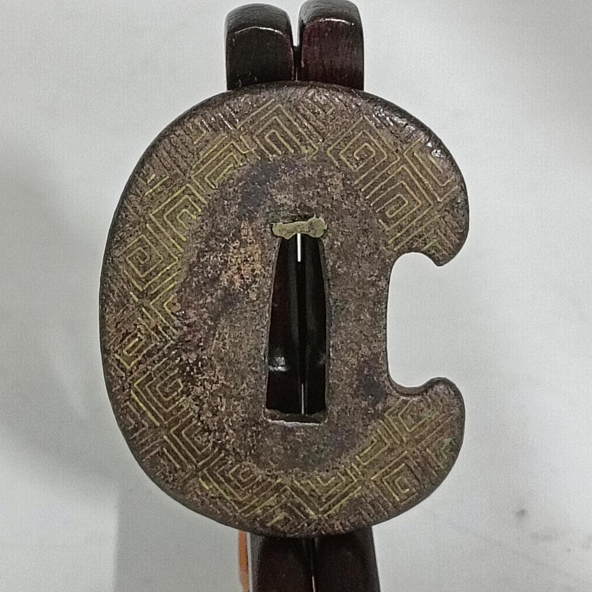 - 【A3687】鉄地 饕餮文彫刻 刀鍔 金工細密彫刻 刀装具 日本刀装具 刀剣美術 骨董品 アンティーク