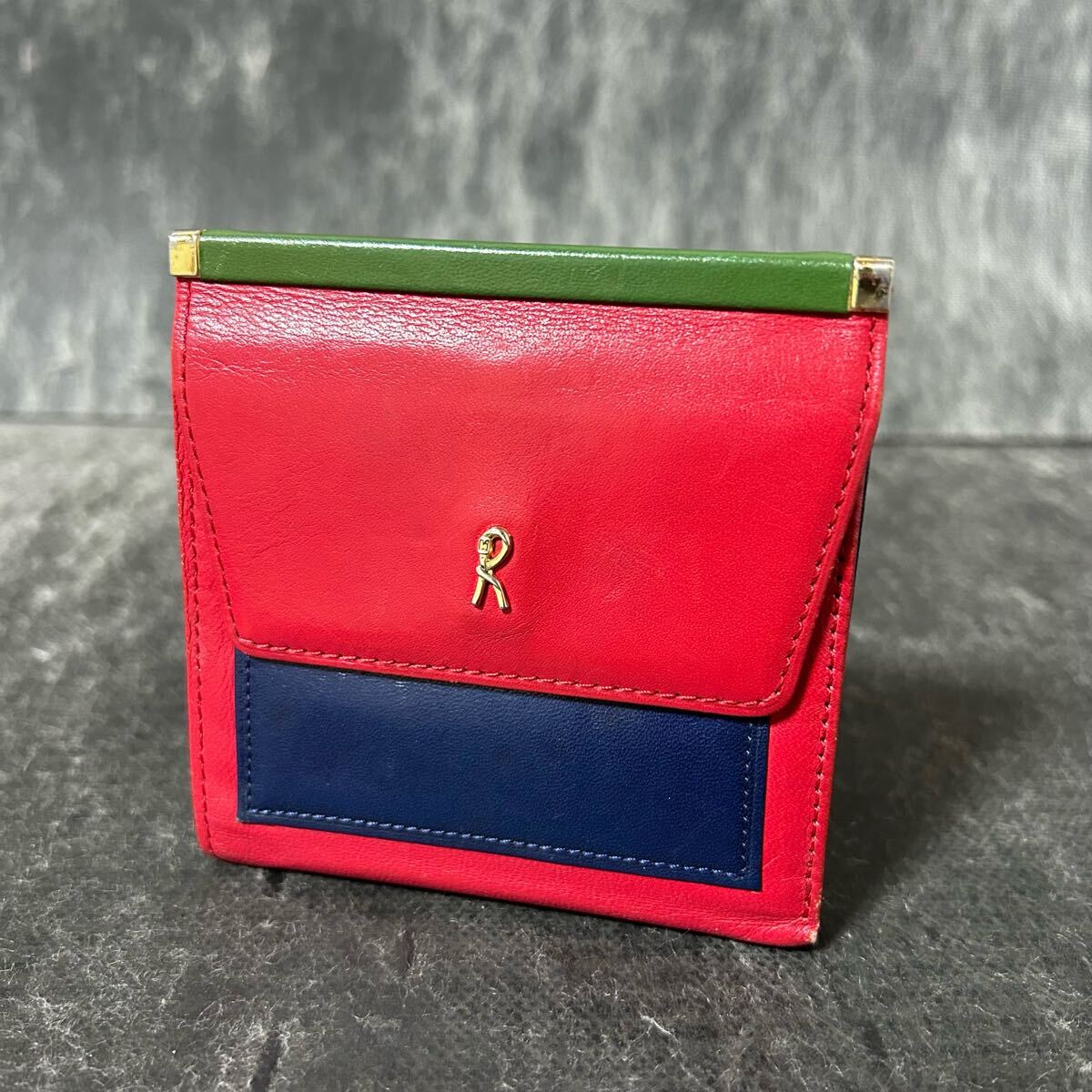 - Roberta di Camerino ロベルタディカメリーノ 二つ折り財布 財布 レザー ネイビー レッド *U
