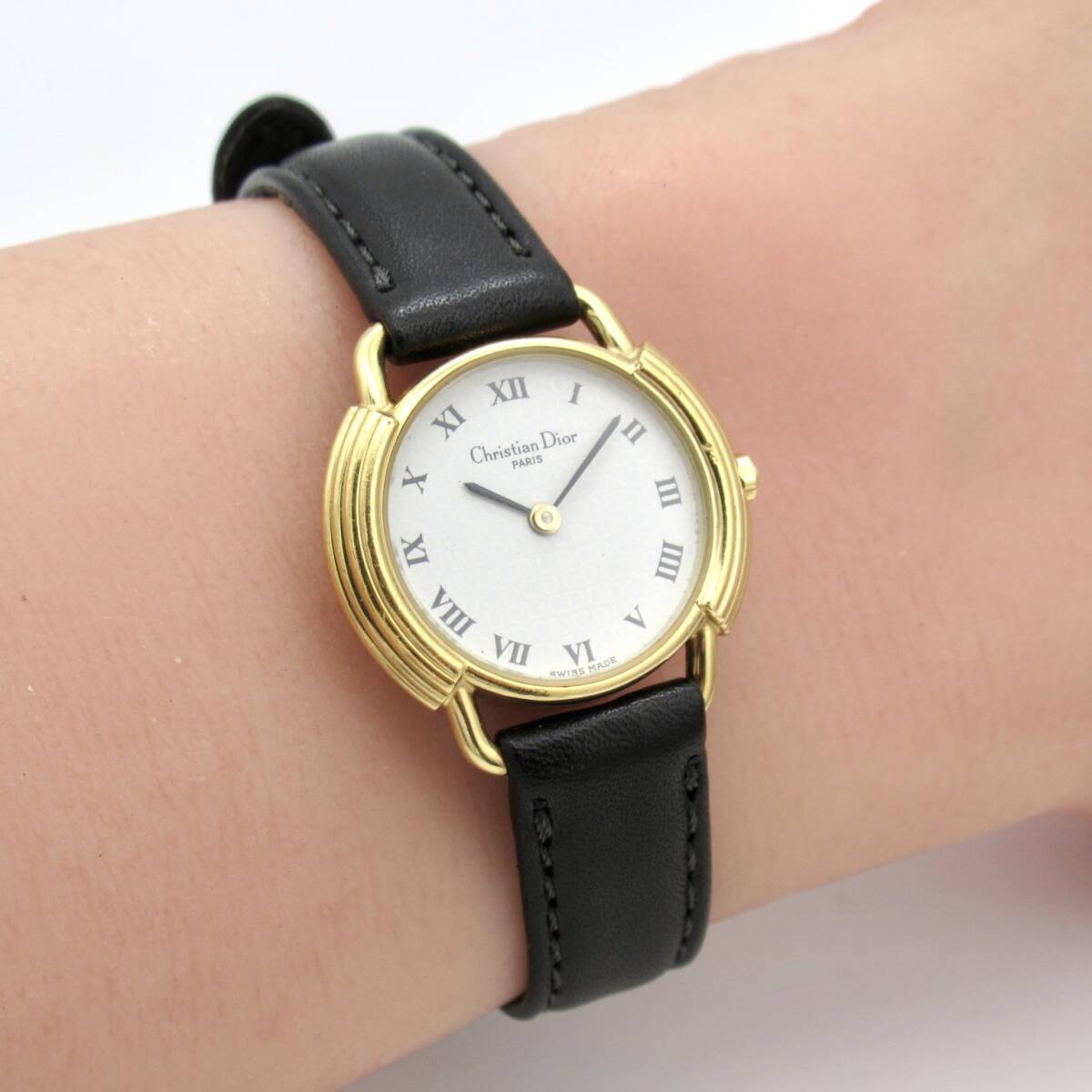 > Christian Dior クリスチャンディオール 58.121 ラウンド ゴールド ホワイト文字盤 CD ロゴ 時計 レディース 金 ローマン ドレス