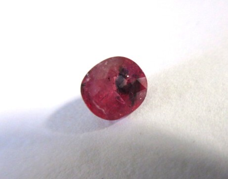 淡いピンクの中に、黒い模様の入ったサファイアです。インクルージョンがあり、少しミルキーな透明感です。UVライトで少し赤く蛍光します。NH