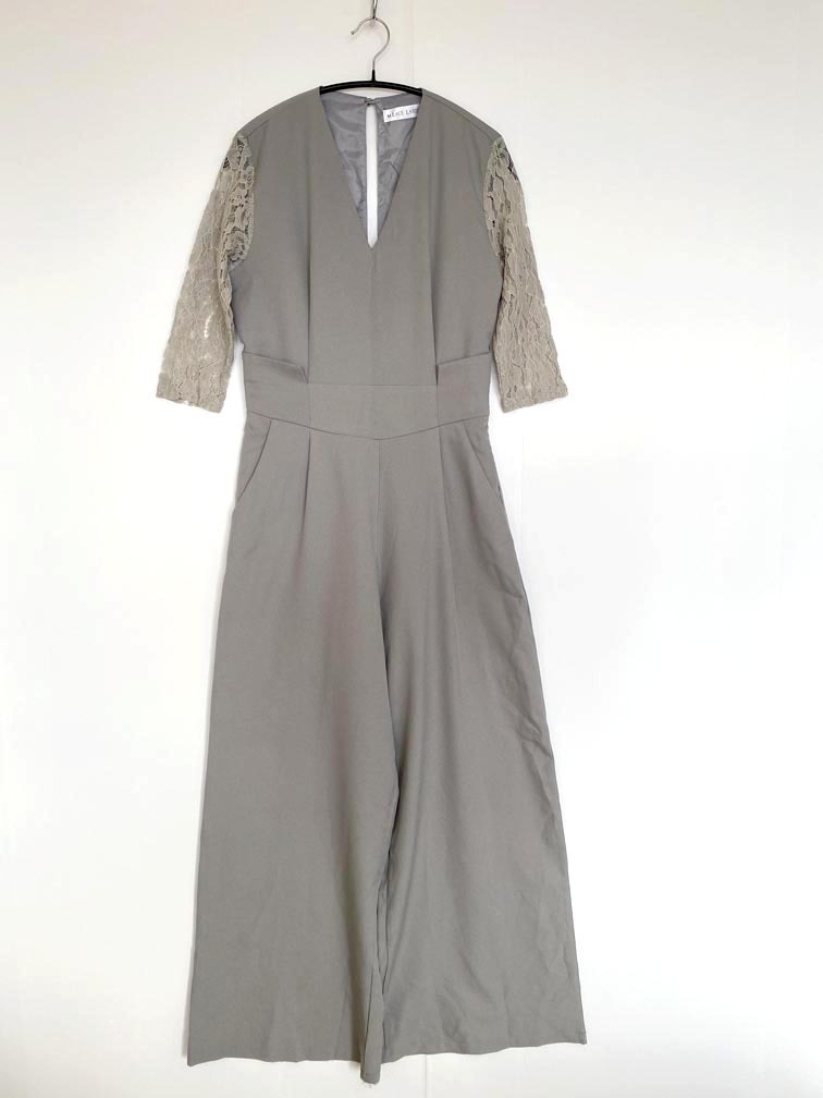- ゆうパケットOK Lace Ladies レースレディース Vネック オールインワン・パンツドレス 結婚式二次会 ドレス ワンピース sizeM/グレー ■■