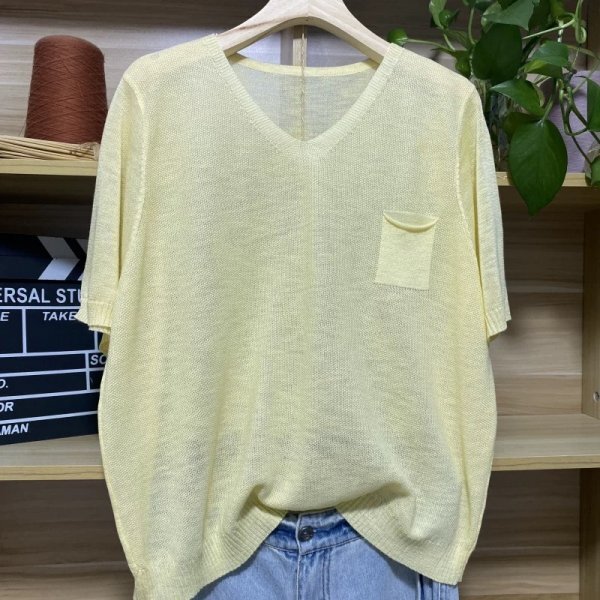 - 25zy サマーニット レディース トップス 高質 ラフ 麻タッチニット チュニック ナチュラル 麻混 サラサラ 涼感 Tシャツ Vネック 6
