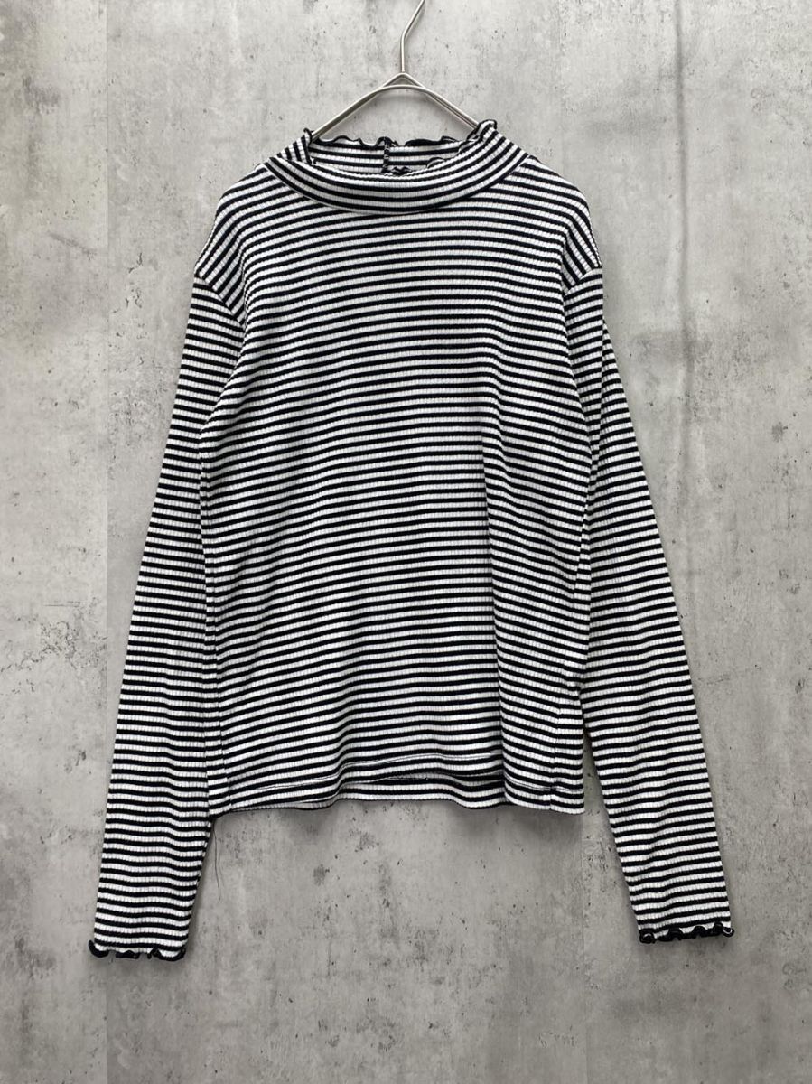 > ゆうパケットOK coen コーエン 7620-642-0452 ボーダー リブハイネックボーダーロングカットソー sizeM/白x黒 ◇■