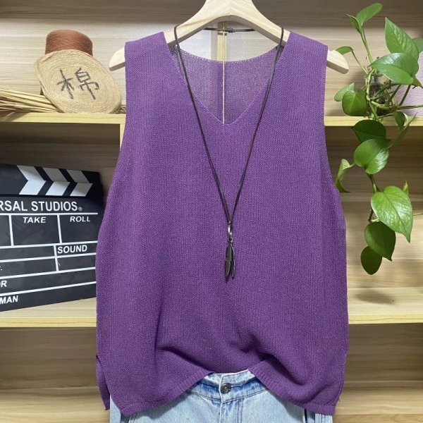 - 25zy サマーニット ノースリーブ トップス 高質 ラフ 麻タッチニット チュニック ナチュラル 麻混 サラサラ 涼感 Vネック5