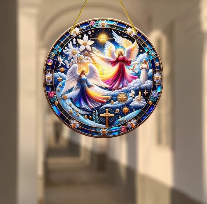 - 【天使】カラフル アクリルプレート 飾り サンキャッチャー 紐付き オブジェ お洒落 壁や窓辺の飾りに