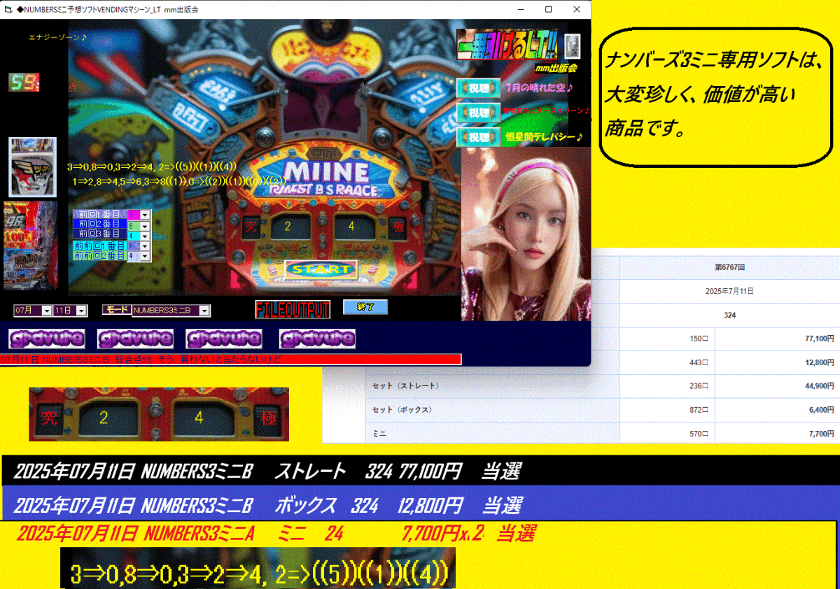 新作 [◆NUMBERSミニ予想ソフトVENDINGマシーン_LT] 予想ソフトをご案内申し上げます。 最強ソフトのNUMBERSミニ予想シリーズが登場! ナンバーズ3ミニ専用ソフトは、大変珍しく、価値が高い商品です。 女性インストラクターのウンナちゃんが高額当選を予感!!! このソフトには「究極の一点」という一点集中予想が装備されています。2025年07月11日 NUMBERS3ミニA ミニ 24 7,700円x3 当選2025年07月11日 NUMBERS3ミニB ストレート 324 77,100円 当選2025年07月11日 NUMBERS3ミニB ボックス 324 12,800円 当選2025年07月11日 NUMBERS3ミニB ミニ 24 7,700円x2 当選2025年07月10日 NUMBERS3ミニC ストレート 364 81,100円 当選2025年07月10日 NUMBERS3ミニC ボックス 364 13,500円 当選2025年07月10日 NUMBERS3ミニC ミニ 64 8,100円x3 当選※プレミアム予想として、たまにNUMBERS3のストレート予想が出現します。出たら激熱!インストラクターのウンナちゃんがハチャメチャの当てまくり! あなたも、もー何が何だか解らぬうちに、持参のお財布に札束が収まり切れずに、 どこかへ札束をポロリと忘れるなんていうこともあり得ますので、気を付けてくださいませ。NUMBERS最強級ソフトといっても過言ではありません。「ラッキートリガー」発動で、予想すべて買い10万円以上当選の87%期待度になります。 このスペックは、NUMBERS予想界史上で歴史的にも最強仕様の名機となります。今主流の「先ばれ告知音」が鳴れば、更に高額当選濃厚! インストラクター振りは、実績と仕様が示す通りです。女性インストラクターのアイドル?!ウンナちゃんが「神回」を予告・・・この日は激熱!!2025年07月11日 NUMBERS3ミニA ミニ 24 7,700円x3 当選[◆NUMBERSミニ予想ソフトVENDINGマシーン_LT]07月11日 NUMBERS3ミニA 総合点59 そう、買わないと当たらないけど[◆NUMBERSミニ予想ソフトVENDINGマシーン_LT][2⇒4,8⇒8,3⇒9,6⇒((5)),2=>((8))((2))((4))][◆NUMBERSミニ予想ソフトVENDINGマシーン_LT][ウンナ「貴方は勝負師ね!」][◆NUMBERSミニ予想ソフトVENDINGマシーン_LT]ウンナ「今日もVENUS期待しちゃうよ♪」 究極の一点 [ 2 ===>>> 4]2025年07月11日 NUMBERS3ミニB ストレート 324 77,100円 当選2025年07月11日 NUMBERS3ミニB ボックス 324 12,800円 当選2025年07月11日 NUMBERS3ミニB ミニ 24 7,700円x2 当選[◆NUMBERSミニ予想ソフトVENDINGマシーン_LT]07月11日 NUMBERS3ミニB 総合点59 そう、買わないと当たらないけど[◆NUMBERSミニ予想ソフトVENDINGマシーン_LT][3⇒0,8⇒0,3⇒2⇒4, 2=>((5))((1))((4))][◆NUMBERSミニ予想ソフトVENDINGマシーン_LT][1⇒2,8⇒4,5⇒6,3⇒8((1)),0=>((2))((1))((0))((2))][◆NUMBERSミニ予想ソフトVENDINGマシーン_LT]ウンナ「今日もVENUS期待しちゃうよ♪」 究極の一点 [ 2 ===>>> 4]※プレミアム予想として、たまにNUMBERS3のストレート予想が出現します。出たら激熱!2025年07月10日 NUMBERS3ミニC ストレート 364 81,100円 当選2025年07月10日 NUMBERS3ミニC ボックス 364 13,500円 当選2025年07月10日 NUMBERS3ミニC ミニ 64 8,100円x3 当選[◆NUMBERSミニ予想ソフトVENDINGマシーン_LT]07月10日 NUMBERS3ミニC ★GOGO★ 総合点38 [神回]ですぞー。[◆NUMBERSミニ予想ソフトVENDINGマシーン_LT][6⇒4,0⇒8,7=>((6)),4=>((6) ))((1) )),5=>((4))((3)) ][◆NUMBERSミニ予想ソフトVENDINGマシーン_LT][6⇒4,3⇒6=>4,6=>((2))((5))((4)),3=>((5))((2))((4))][◆NUMBERSミニ予想ソフトVENDINGマシーン_LT]ウンナ「今日もVENUS期待しちゃうよ♪」 究極の一点 [ 9 ===>>> 3]今回は、新機能、業界開発の機能を3つ搭載しています! 「ラッキートリガー」発動で、予想すべて買い10万円以上当選の87%期待度になります。三つ目が、「究極の一点」という一点集中予想が装備されています。・買い目は、実質 NUMBERS3ミニ 7,8点、 プラス「究極の一点」という一点集中予想。 条件により、倍の数の買い目が出ることが御座います。(新機能が目白押し)あなた様も、今日からでも、一つ楽しみを持つのも、どうですか。もうすでに人生が楽しく変わっています。NUMBERS3ミニ 予想ができます。高額当選でした♪今回は、特典グラビア ウンナちゃんの画像が観れる機能が付いています もーウンナちゃんに、身も心もまかせちゃってください。※(金の延べ棒が光りました)と出でていますが、もっとこれ以上の熱い予告が沢山あります。 ★GOGOランプも光らずに高額当選ですから、まだまだ余力残しです。このツールは、診断チェック機能を装備した、予想ソフトです。 1.買いたいNUMBERS3ミニが、本当に信頼できるのか、ガチで勝負しても、大丈夫なのか? 2.買い目を数点に絞りたいが、有望な勝負できる数字を、知っておきたい。 3.NUMBERS3ミニで買いたいが、1、2点で勝負に適した買い目を知りたい。 要は、このソフト 一点一点の買い目の診断と、勝負になる絞った予想の買い目も出してくれます。 診断した買い目の総合の評価点数や、どんな勝負度合いが良いかの指示も出ます。実際に、どんな当て方を過去にこの予想ツールがしてきたのかを、ご説明いたします。こんなシンプルなツールで、こんなに高配当などが立て続けに当たるのですから、楽です。[[◆NUMBERSミニ予想ソフトVENDINGマシーン_LTの具体的仕様な説明]]・このソフトは