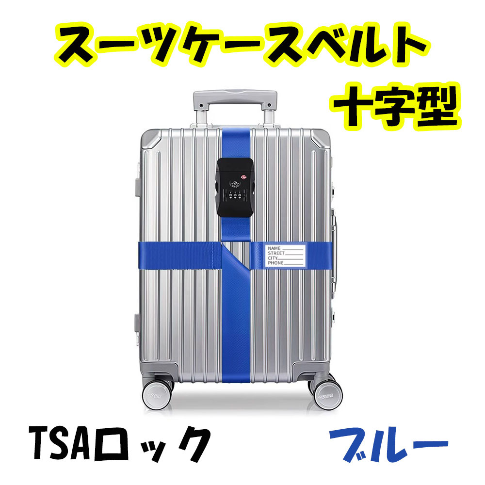 - スーツケースベルト 十字型 ブルー ダイヤル式 3桁 TSAロック 旅行 出張 キャリーバッグ ベルト