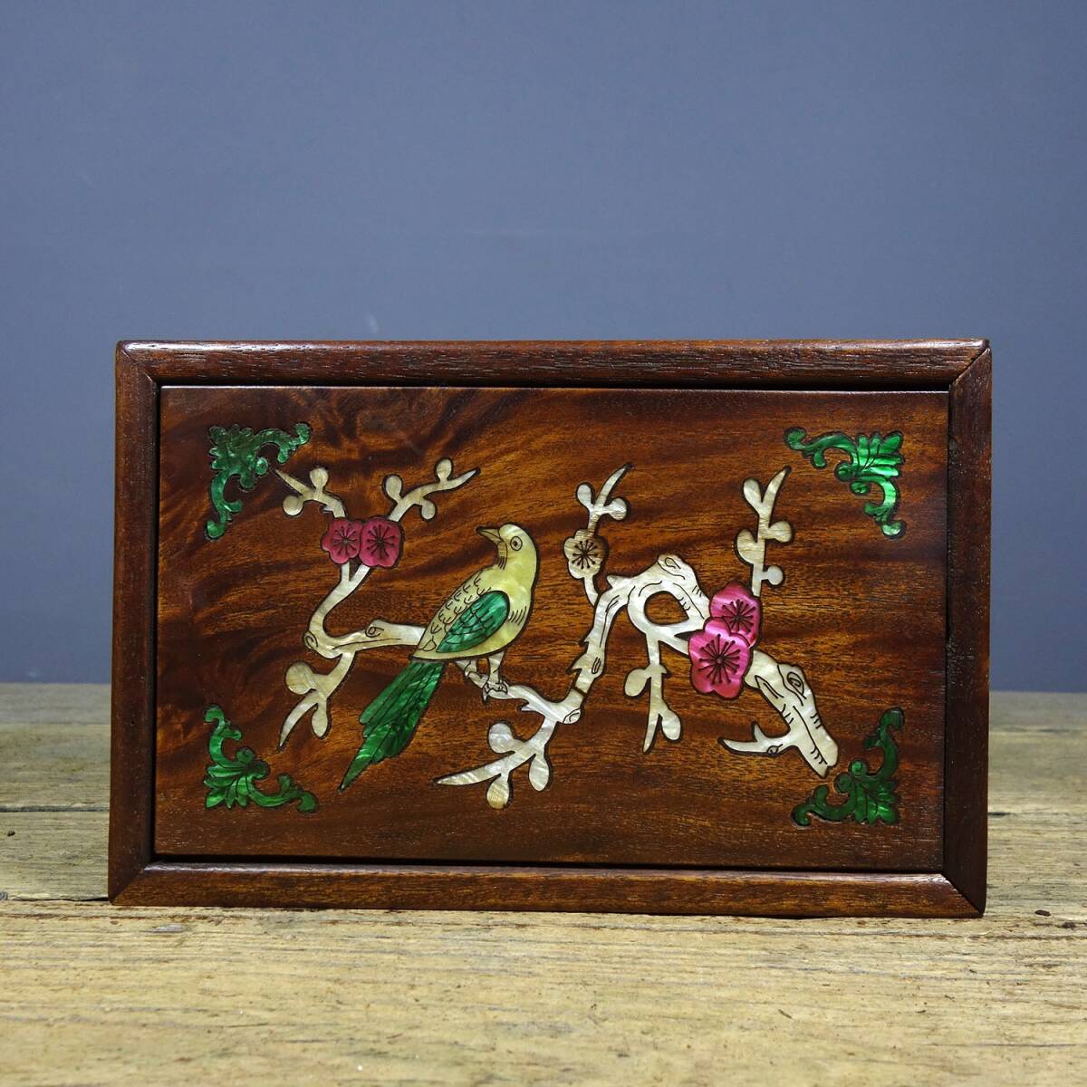 - 蔵友旧蔵出 花梨木製 細密彫 彩貝嵌 喜上眉梢紋 首飾盒 文房具 置物 古賞物 中国古玩 中国古美術品