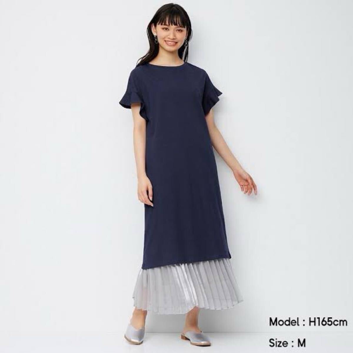 - sale!新品タグ付☆GU ジーユー☆フレアスリーブワンピース紺3XL
