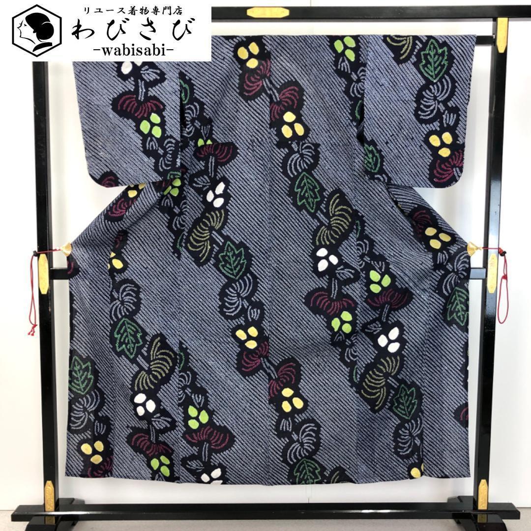鉄葡萄色のお色味に葉っぱ模様がデザインされた素敵な柄裄のお品でございます。