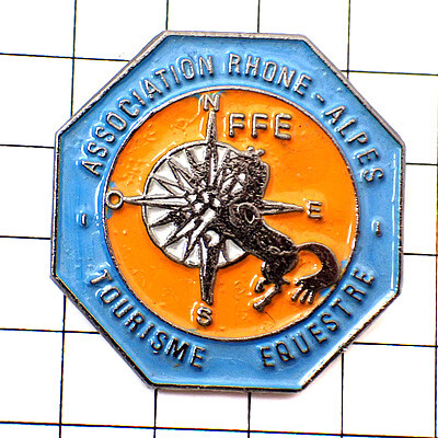 - ピンバッジ・黒馬と方位コンパス乗馬ツアー東西南北◆フランス限定ピンズ◆レアなヴィンテージものピンバッチ