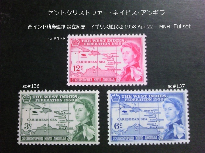 - セントクリストファー・ネイビス・アンギラ 西インド諸島連邦設立 1958 sc#136~8 Fullset