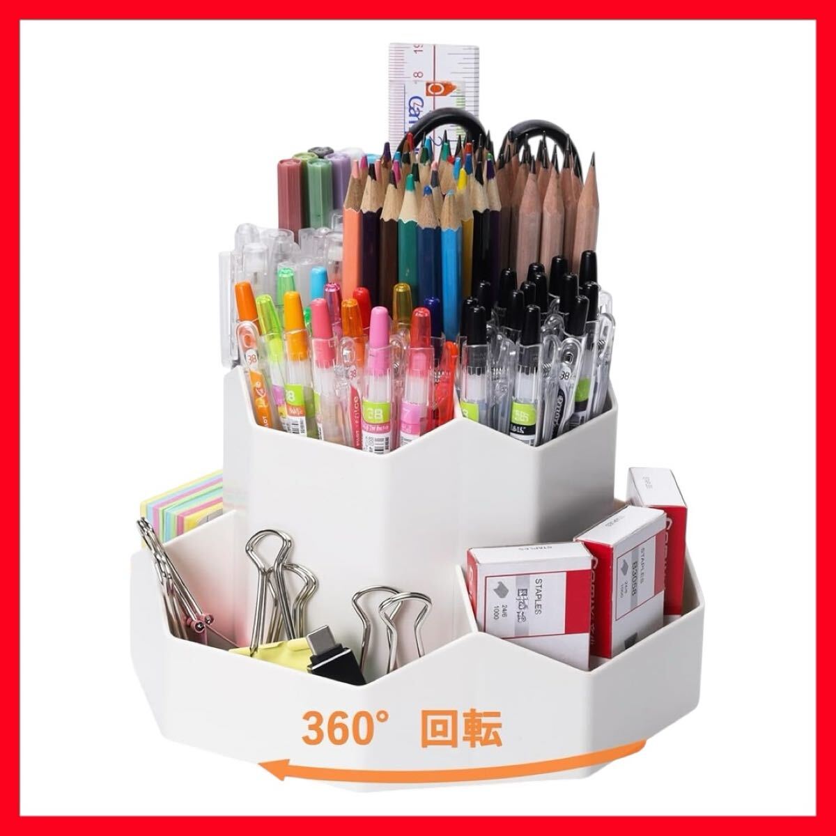 > ペン立て 360度回転 ペンホルダー 大容量 9グリード分類鉛筆たて 多機能 分類箱 小物分類 卓上収納 デスクオーガナイザー 文房具 ホワイト