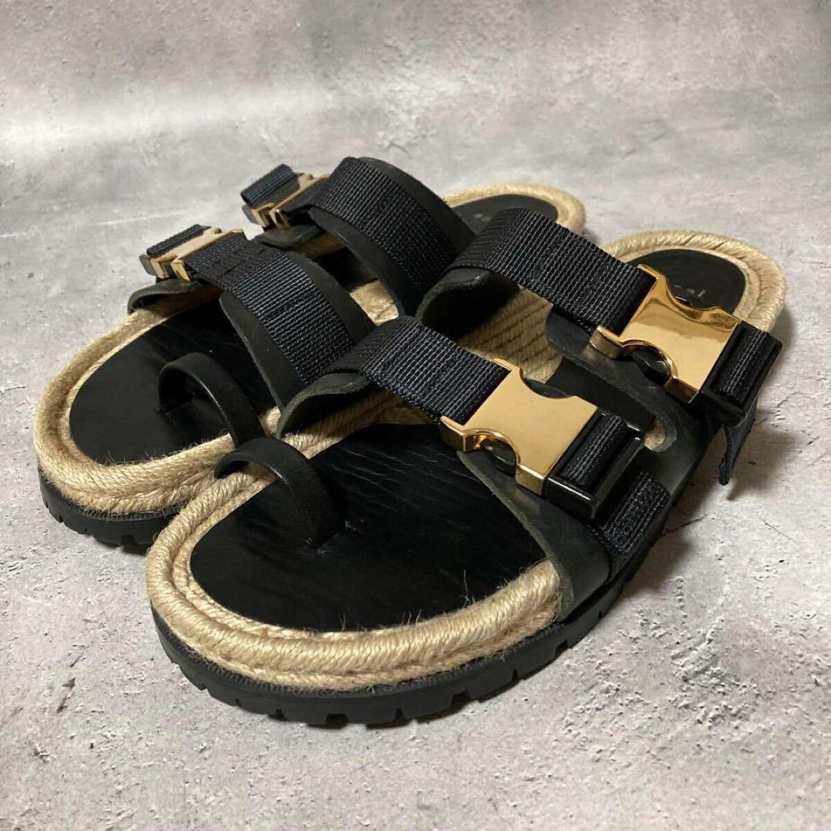 - 美品 サカイ sacai (40) サムループ トングサンダル エスパドリーユサムループ レザー ベルト ゴールド金具 日本製 ビブラムソール vibram