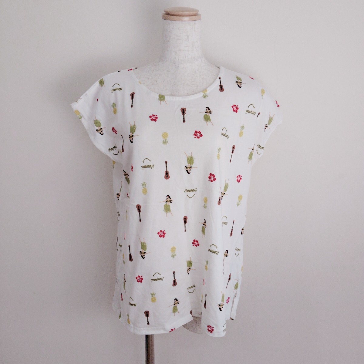 - 0715/M/SMILEYFACE レディース フレンチフリーブ カットソー Tシャツ 総柄 白