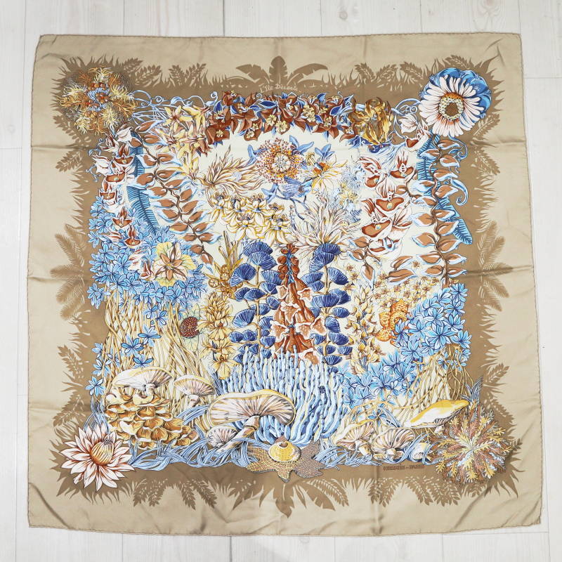 - HERMES L'Ile Deserte エルメス 無人島 カレ90 シルク 大判スカーフ ベージュ S07-k116