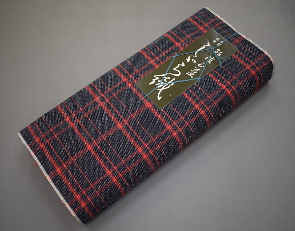 - A16-2【凛々】即決 新古品 阿波正藍 しじら織 ゆかた反物 紺 赤 格子 未仕立て品
