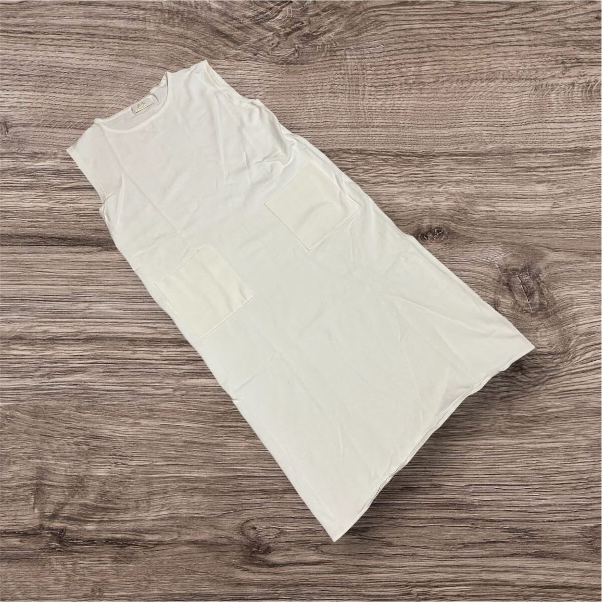 - 白ホワイト シンプルワンピース ポケットつき プチフォーマルサイズM〜L