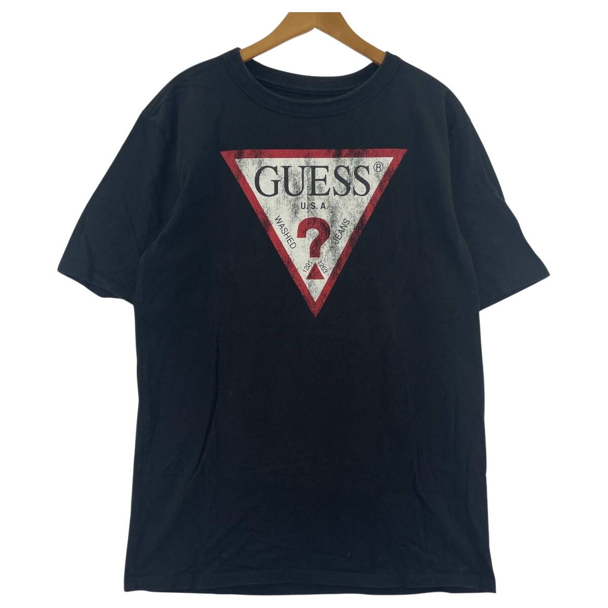 - GUESS JEANS ゲスジーンズ フロントプリント 半袖Tシャツ sizeXS/ブラック ゆうパケットOK