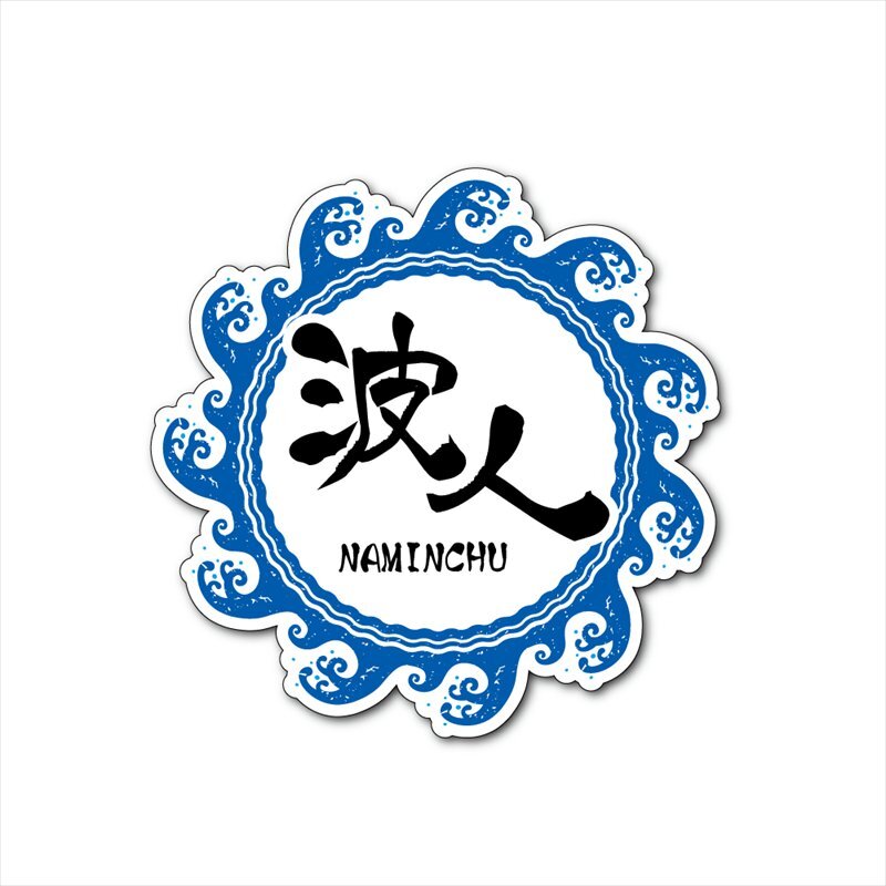 - (マットラミ) 波人ステッカー サーフィン 海 9cm ((ブルー×ブラック)) アウトドア カー 防水 おもしろ