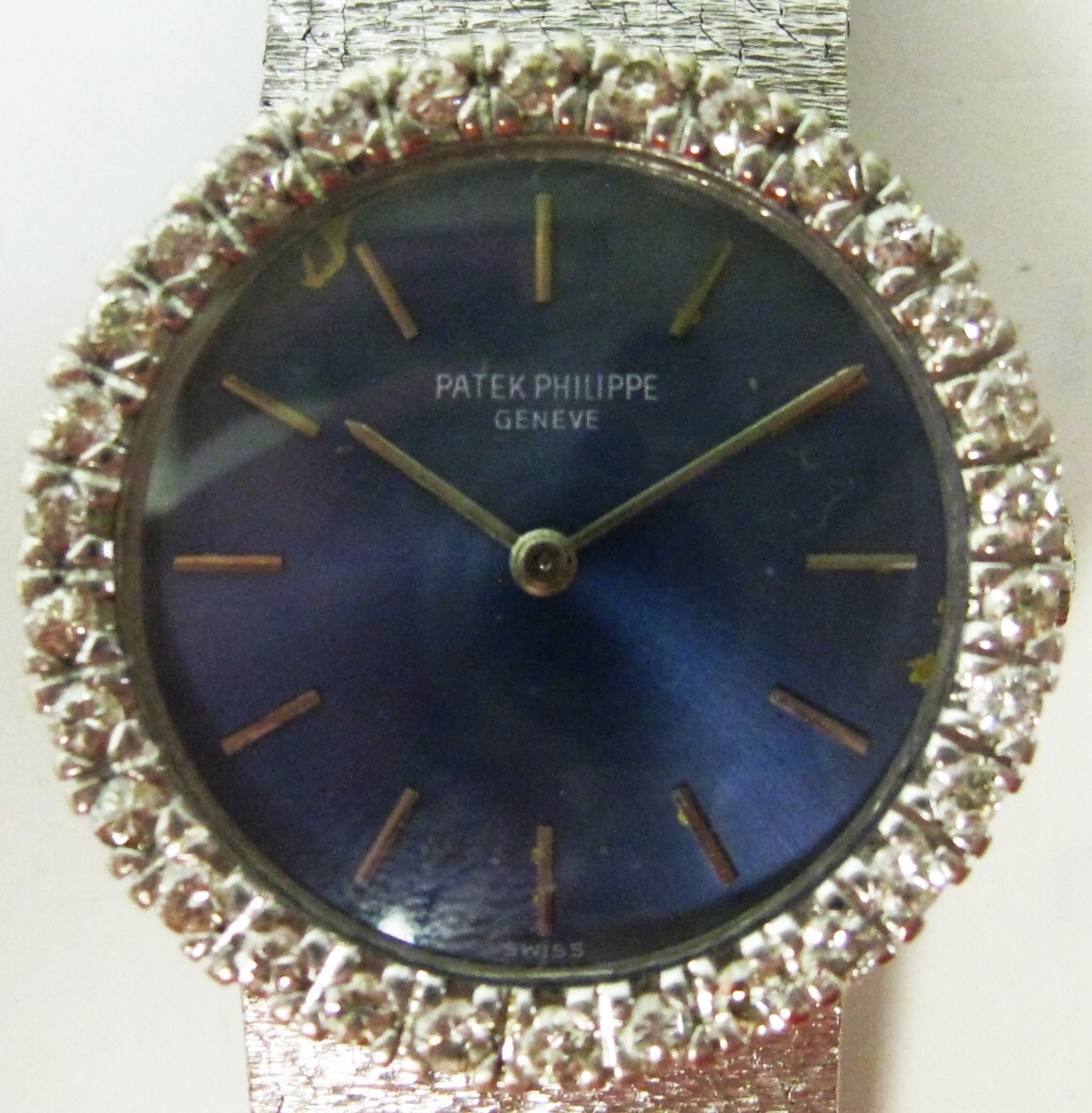 > 【東京 谷中 質屋おぢさん】極美品アンティークK18WG パテック 30ヶのダイヤベゼル2針 手巻レディース