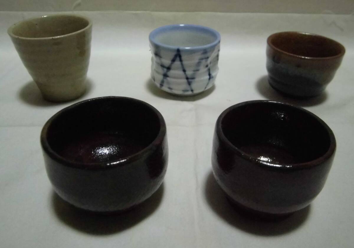 - 古い ぐい呑み 色々 5客 お猪口 盃 杯 日本酒 酒器 工芸品 陶器 レトロ アンティーク