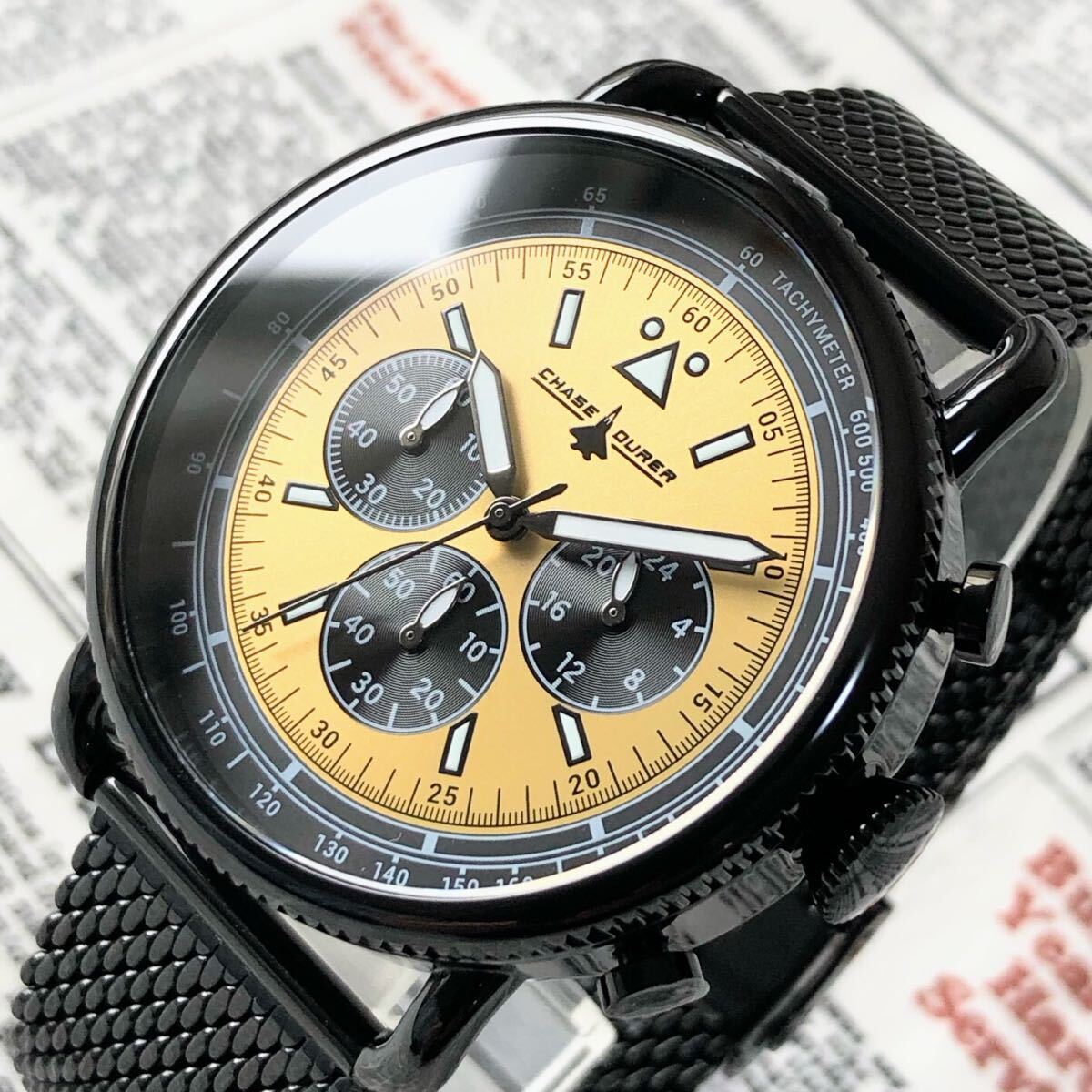 > #3688【大人のお洒落】メンズ 腕時計 CHASE DURER チェイスデューラー クォーツ 黄文字盤 Quartz 動作良好 防水 クォーツ クロノグラフ 3針