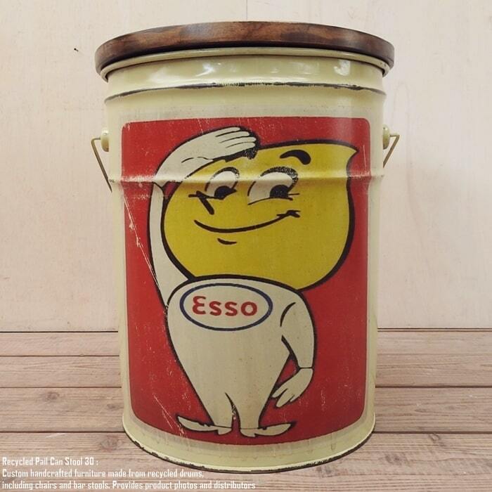 - ペール缶スツール Esso Man [エッソマン] エッソボーイ 収納付き椅子 リメイク家具 オイル缶 ペンキ缶 スチール腰掛