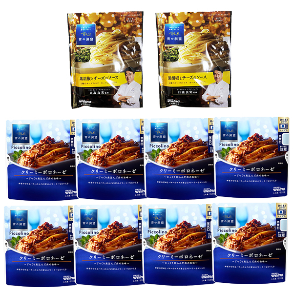 - ■青の洞窟 piccolino 黒胡椒とチーズのソース・クリーミーボロネーゼ 2種10袋(12人前)■