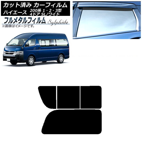 - カーフィルム トヨタ ハイエース 200系 1/2/3型 バン 4ドア スーパーロング/ワイド リア 2列目 右のみ開閉窓 プライバシーガラス専用 フ…