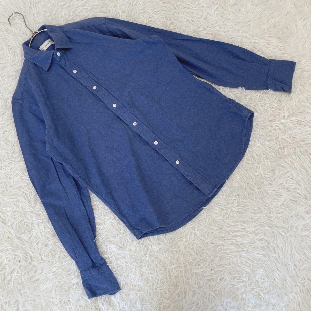 - 『ユナイテッドアローズ』 (S) コットンフランネルシャツ 無地 シンプル 青