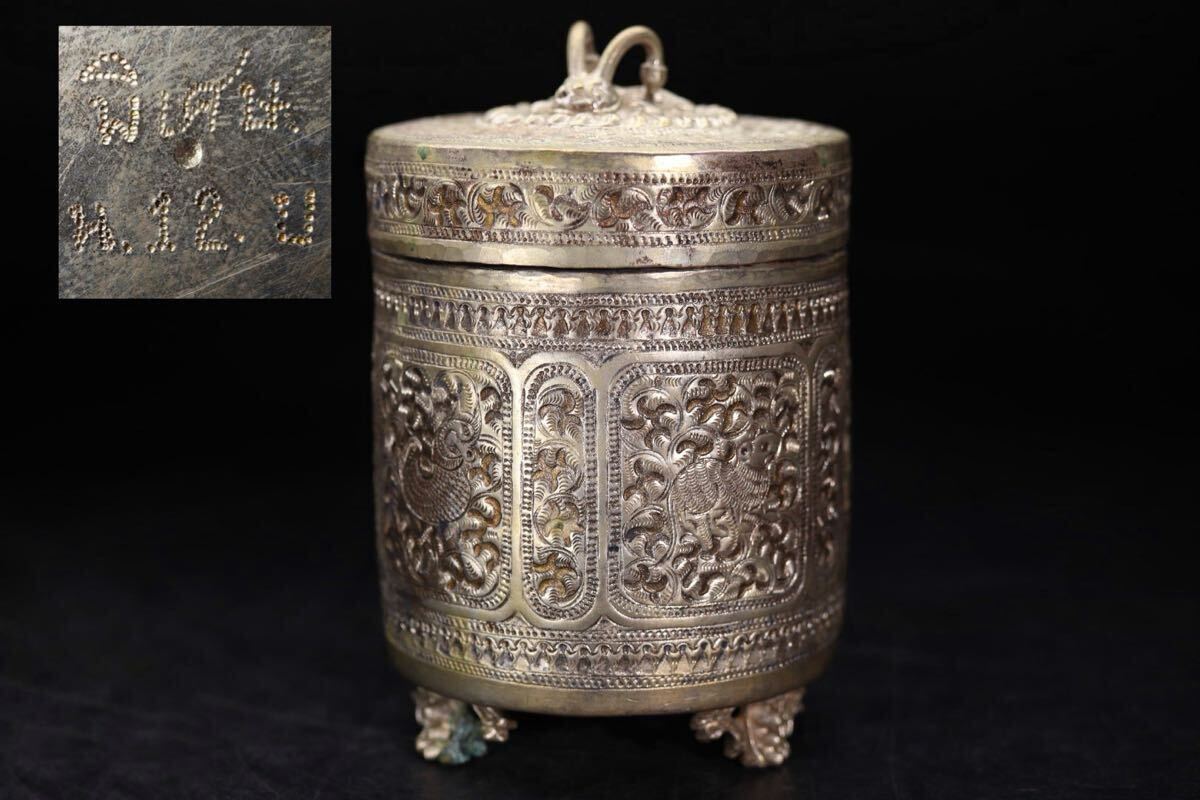 - 時代 底款 金工 小物入れ / アンティーク 彫金 細密 煎茶道具 煎茶飾 検索: 銀 錫 白銅 銅 .G2043