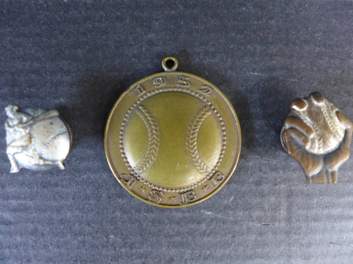 - ★ 時代物 古い野球関連の記章 ボール型 バッター 徽章 バッチ 3個 昭和レトロ アンティーク ★