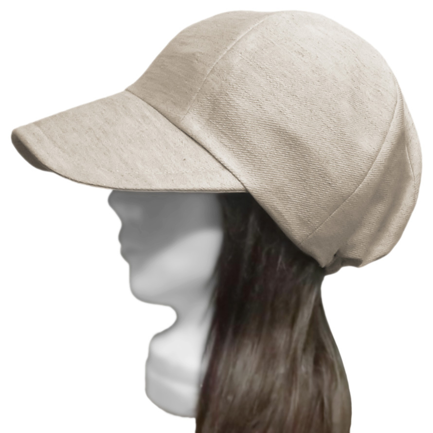 - ハンドメイド◆つば広キャスケット◆ハーフリネンスラブニット/杢ナチュラル ◇紫外線対策・ゆったりサイズ・小顔効果・オールシーズン◇