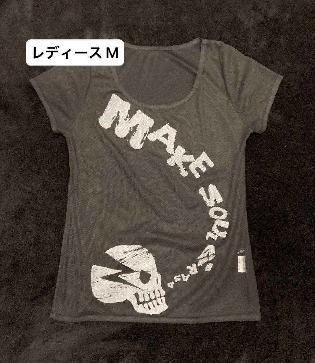 - スカルプリント シフォンTシャツ /ブラック×ホワイト / レディース Mサイズ