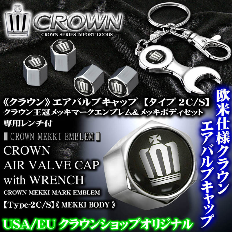- 210/200クラウン・マジェスタ/メッキ王冠マークエンブレム付/エアバルブキャップ/メッキボディ/タイプ2C/S 専用レンチ付/4個セット/ブラガ