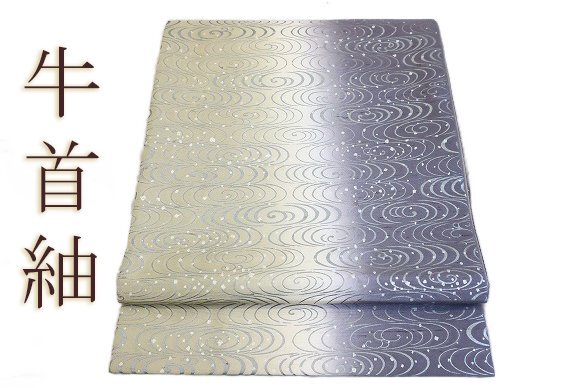 - 【送料無料】逸品 美品 袋帯 牛首紬 灰紫 流水文 長さ4m45cm 全通柄 証紙付 仕立て上がり 正絹 フォーマル 着物フィ m-8010