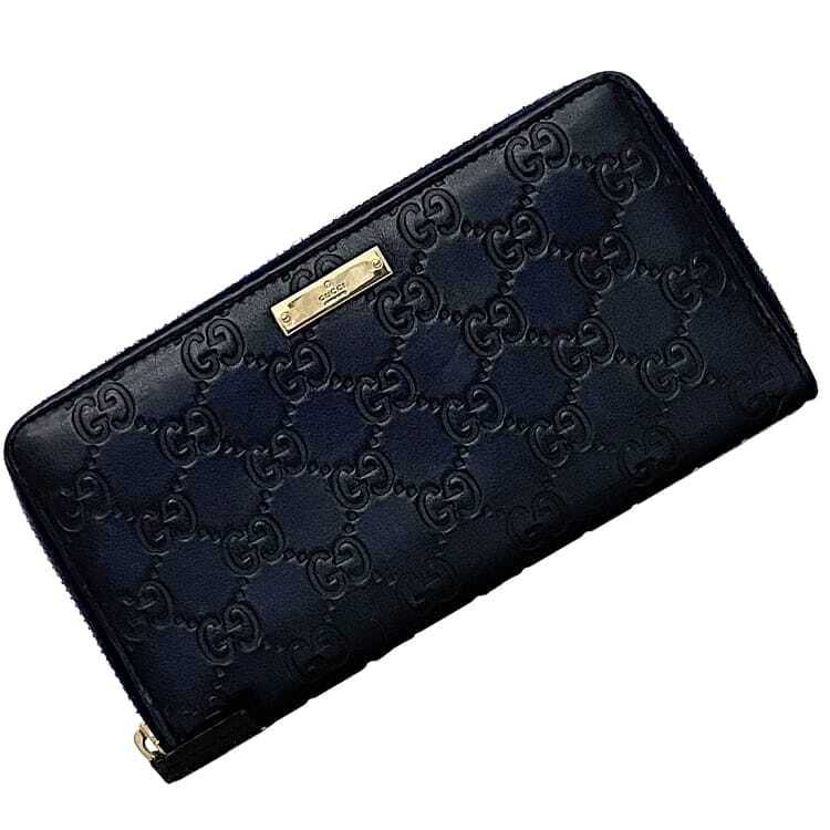 > グッチ ラウンドファスナー 長財布 ec-23550 ネイビー シマライン 307980 財布 レザー 中古 2067