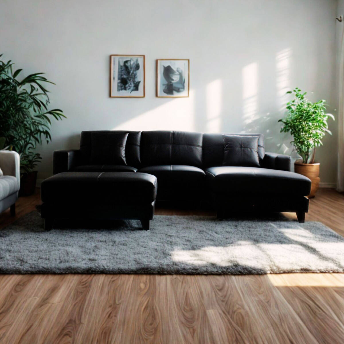 - 送料無料 ソファー ソファ カウチソファ 3人掛け コーナー L字 ブラック 黒 幅250cm 【カウチ座:座って左】本革 半革 1mm厚 172cp-2pco