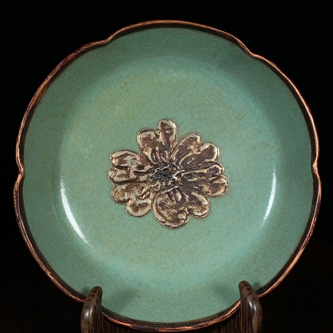 - 蔵友旧蔵出 宋 汝窯 包口 銀嵌 花卉紋 卷足洗 稀少珍品 貴重品 古陶瓷品 置物 古賞物 中国古玩 中国古美術品