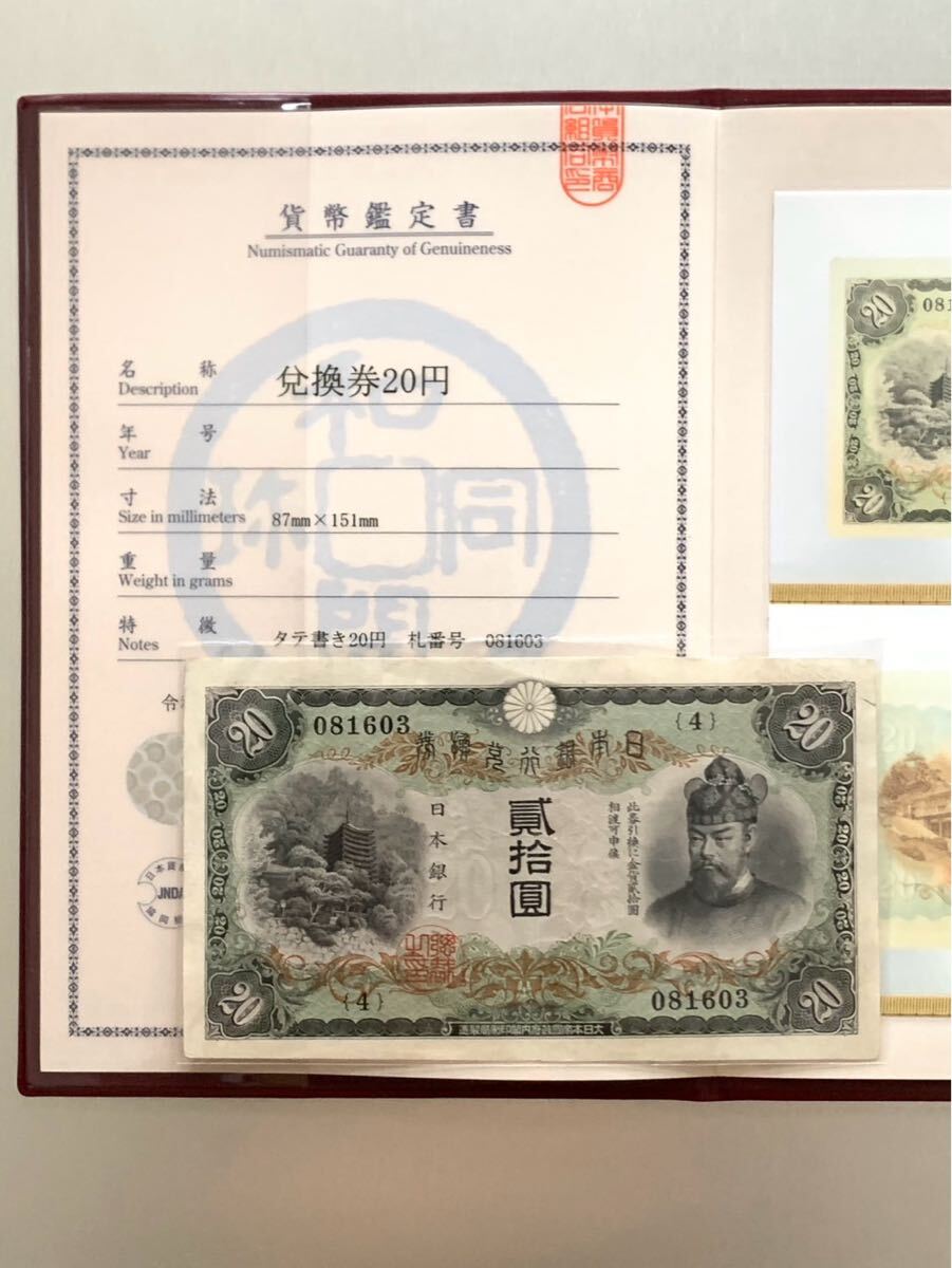 - 【古銭】兌換券20円タテ書き20円 1931〜1946年