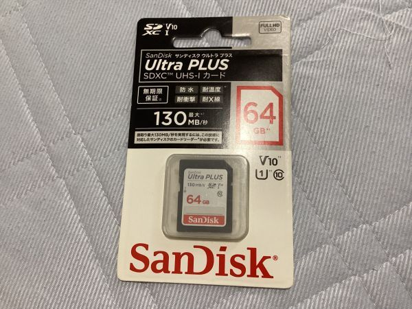 > 未使用未開封 SanDisk ウルトラプラス SDカード SDXC 64GB///大容量高画質動画画像ファイル記録家族子供成長学校旅行記念